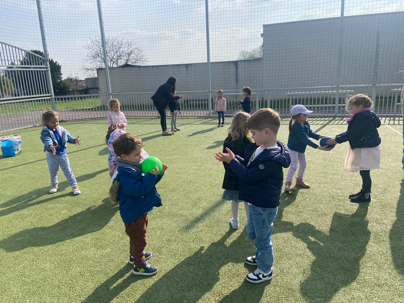 Nous avons joué à des jeux de ballons pour apprendre à lancer, loin, haut, fort et précisément. Il faut aussi savoir rattraper.