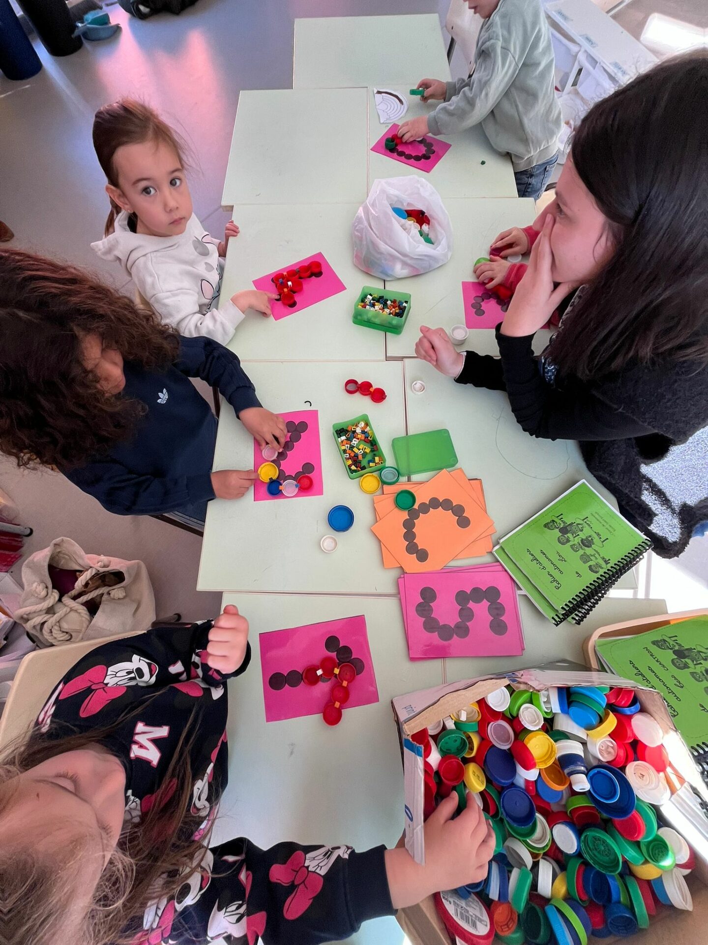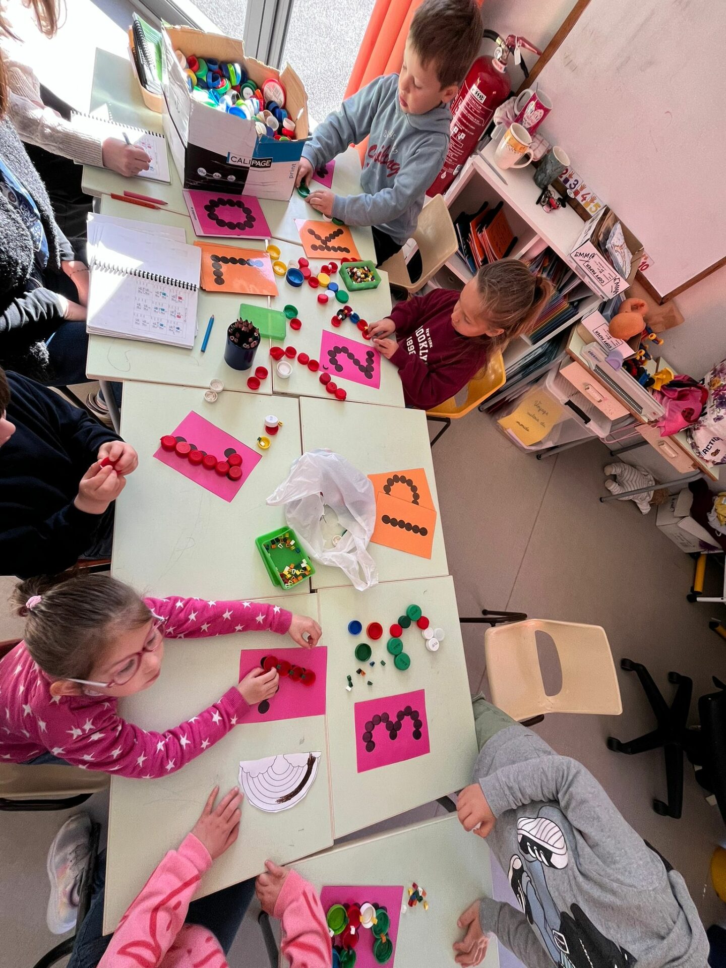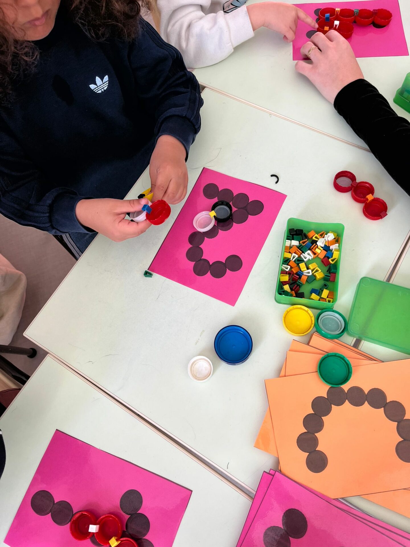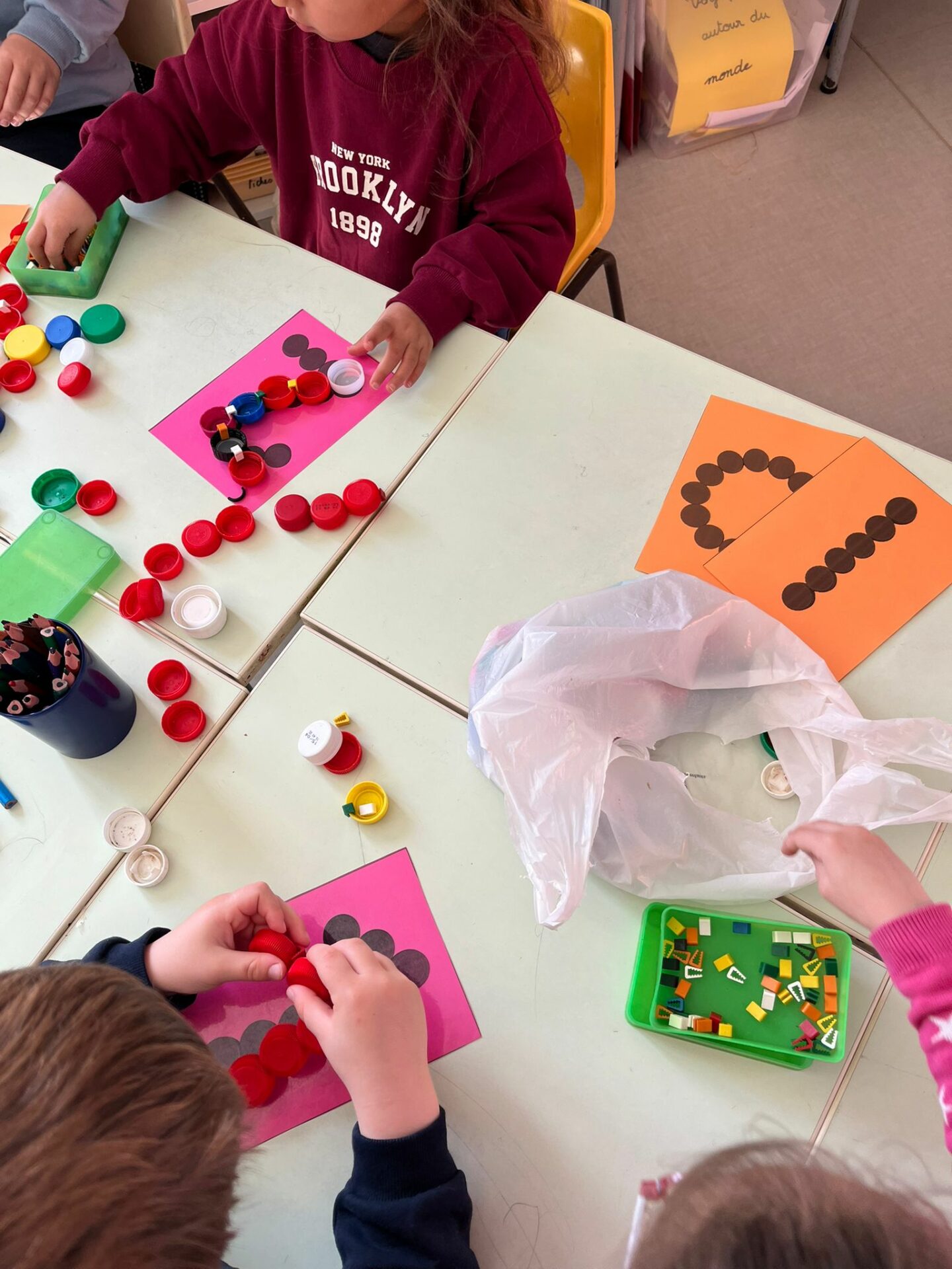 Nous avons travaillé les clip-it, lettres et chiffres ont pris forme avec les bouchons.