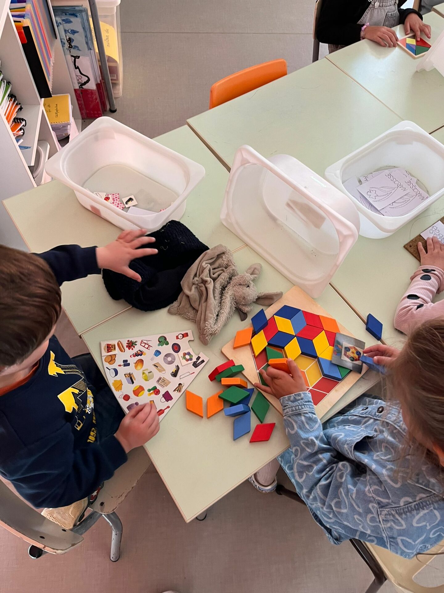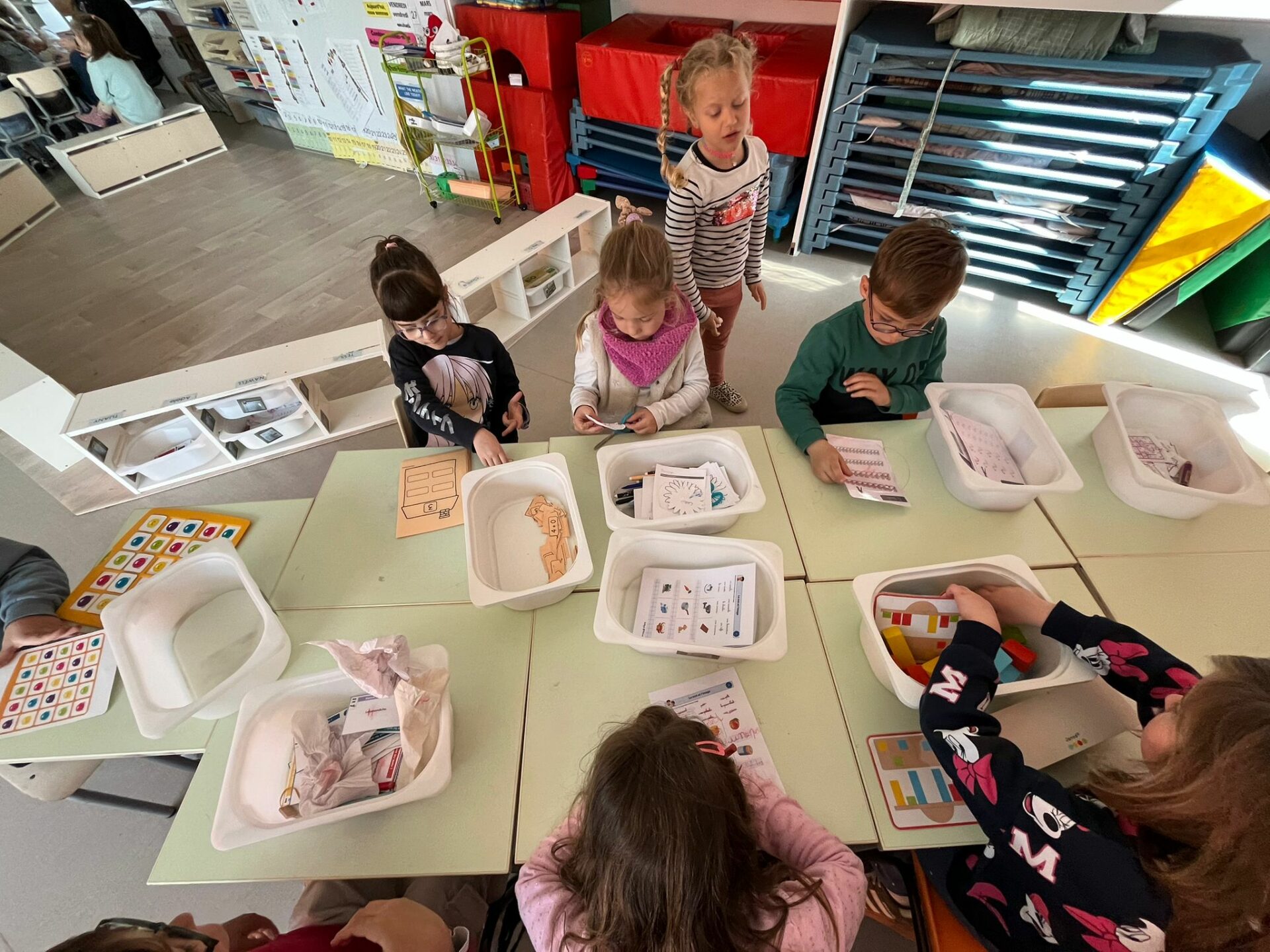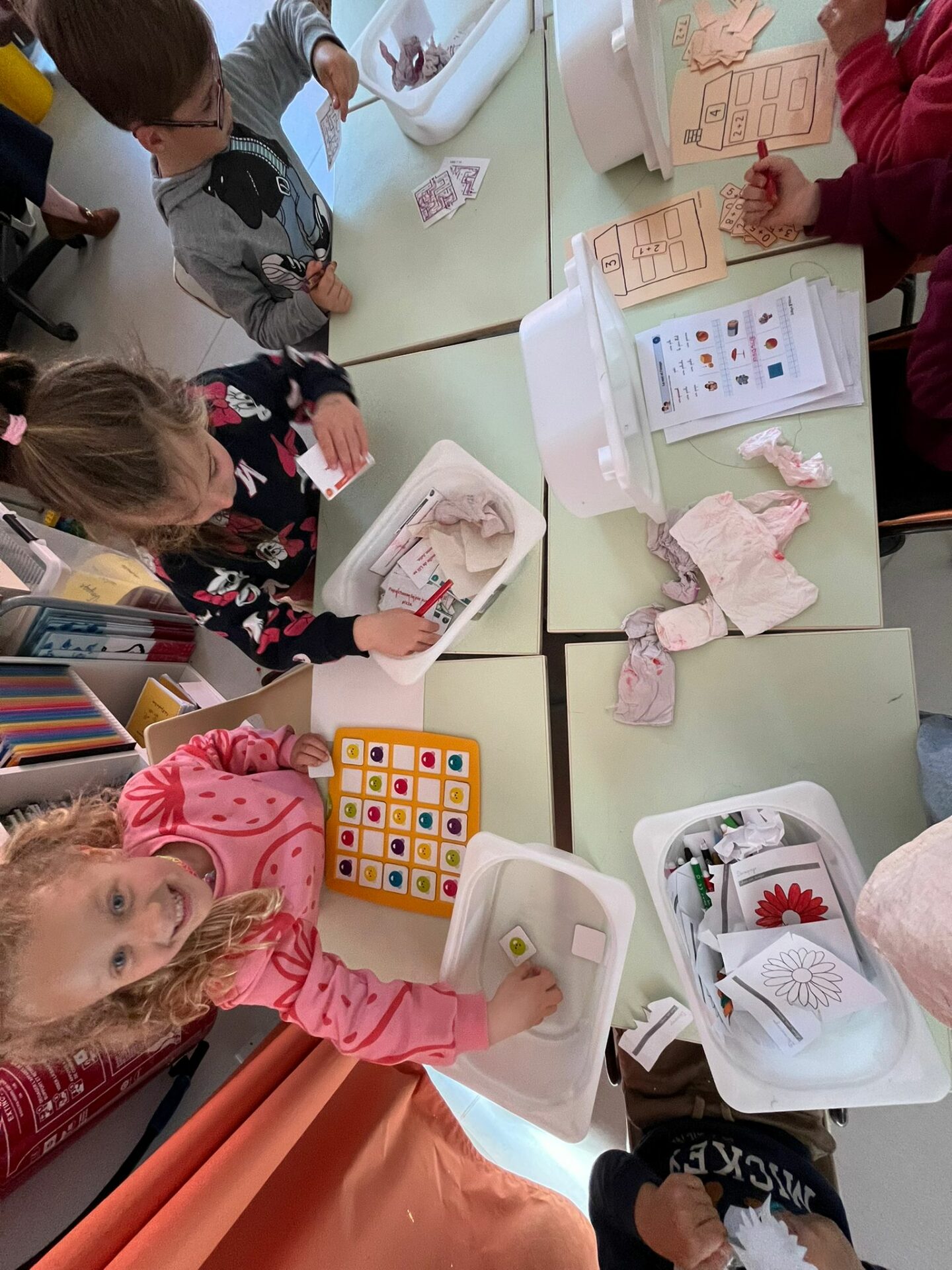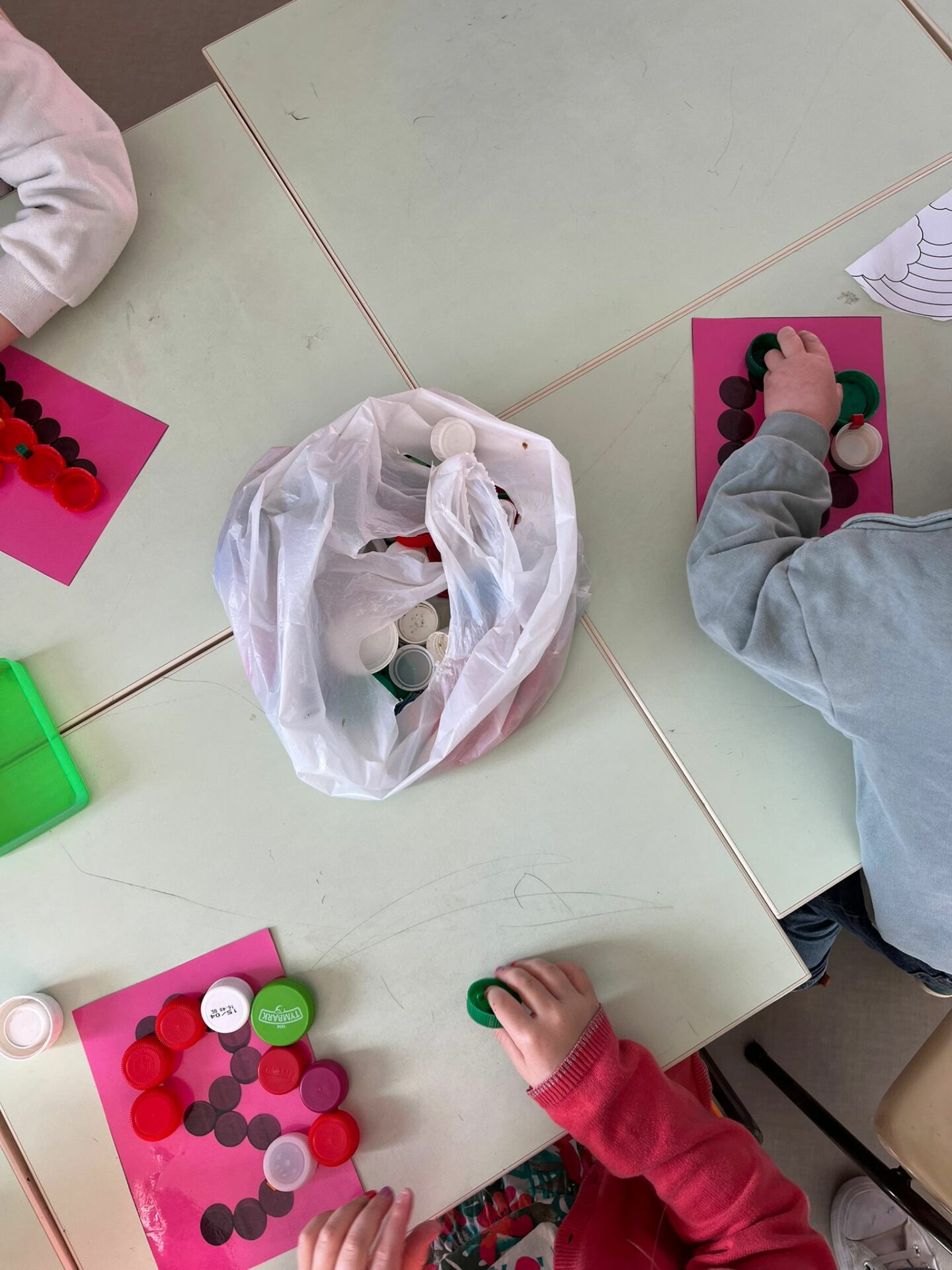 Nous avons travaillé les clip-it, lettres et chiffres ont pris forme avec les bouchons.