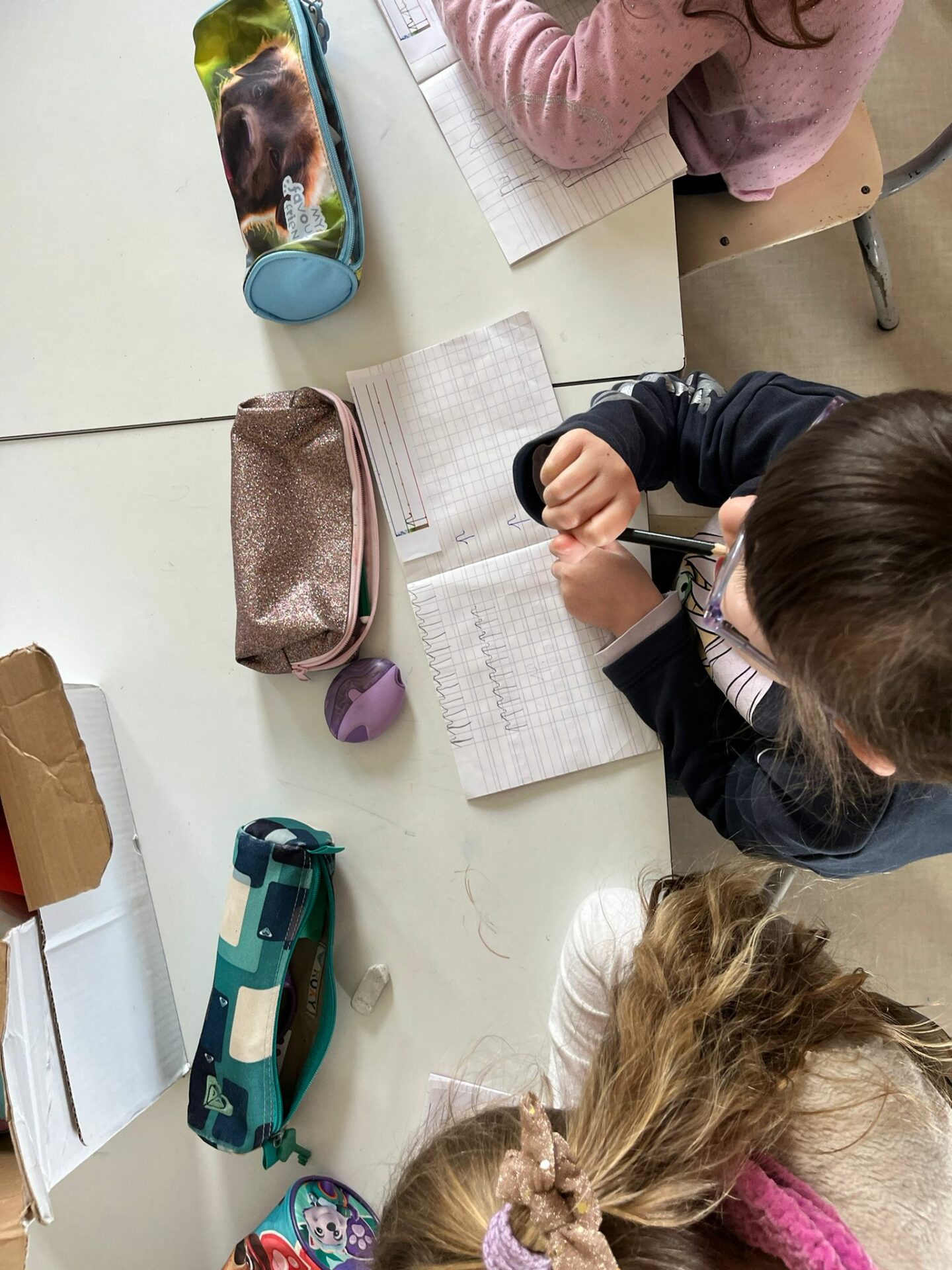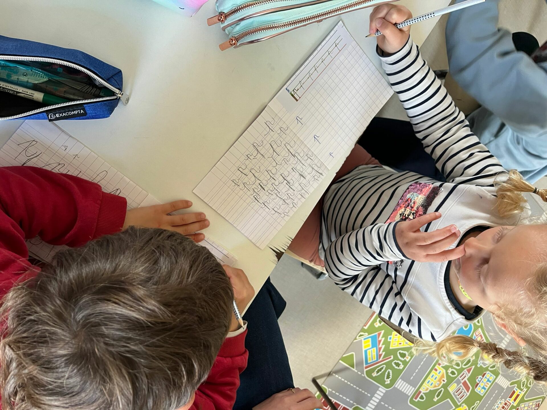 Les GS continue l’apprentissage des lettres en écriture cursive.